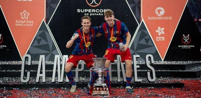 两人外形相似,也成了西班牙超级杯夺冠后大家调侃的话题之一。汤米当时入选了名单但并未出场,而德容在击败皇马的决赛后,特意和他合影留念。库巴西当时还开玩笑称:“两个德容。”